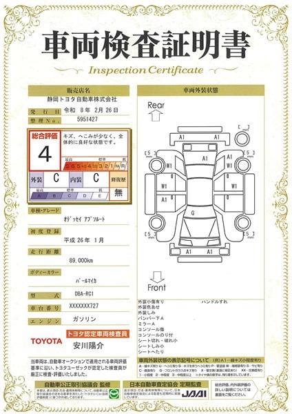 車両検査証明書付きです。おクルマの状態がわかりやすく安心ですよ♪