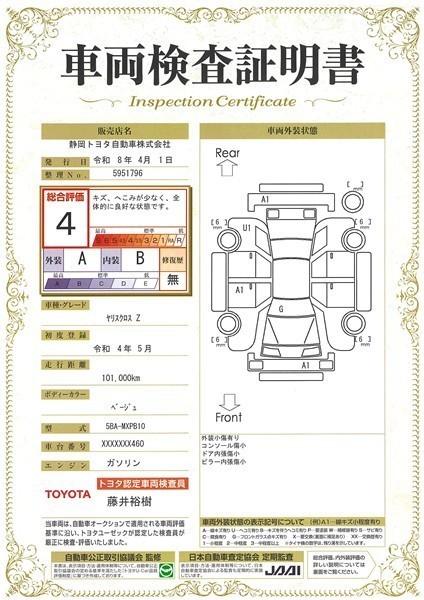 車両検査証明書付きです。おクルマの状態がわかりやすく安心ですよ♪