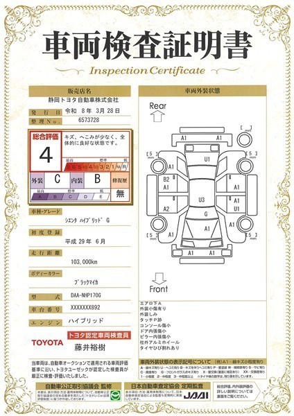 車両検査証明書付きです。おクルマの状態がわかりやすく安心ですよ♪