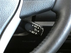 クルーズコントロールスイッチです。アクセルペダルを踏まずに定速走行できるので、高速道路などでの長時間運転の負荷軽減に寄与します。無駄なアクセルの踏み込みも抑えられエコドライブにも貢献しますね。