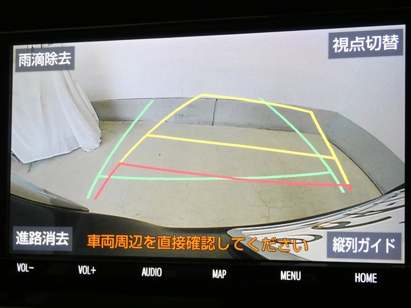 ハンドル操作に連動してガイドラインが変化するバックガイドライン付きのバックモニターです。車庫入れや縦列駐車をサポートします。