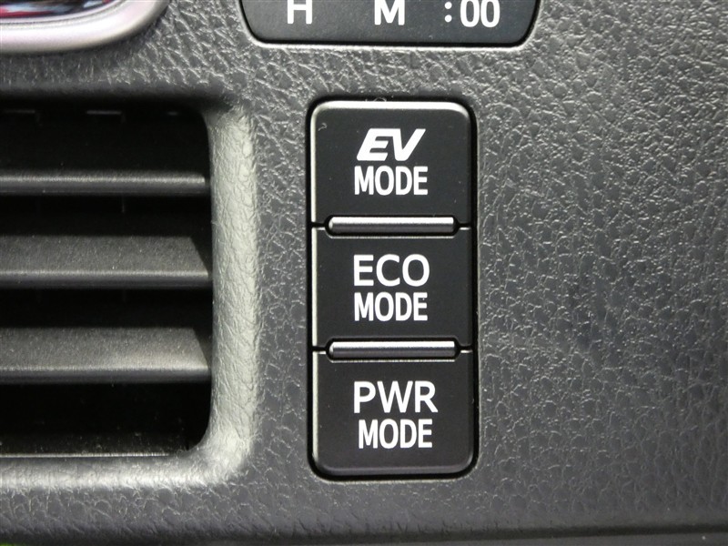 EVモード、エコモード、パワーモード付きです。エコモードに切り替えることで、燃費の向上をサポートしてくれます。また、EVモードではモーターだけで走行できますよ!