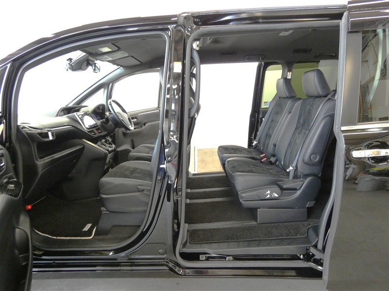 両側のスライドドアが電動で開閉します。操作はワイヤレスキー、室内のコントロールスイッチ、ドアハンドルでおこなえます。お子様・お年寄りの方も楽に開閉でき、狭い道でも安心ですね!