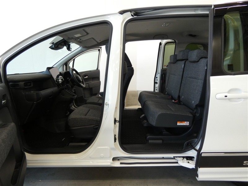 両側のスライドドアが電動で開閉します。操作はワイヤレスキー、室内のコントロールスイッチ、ドアハンドルでおこなえます。お子様・お年寄りの方も楽に開閉でき、狭い道でも安心ですね!