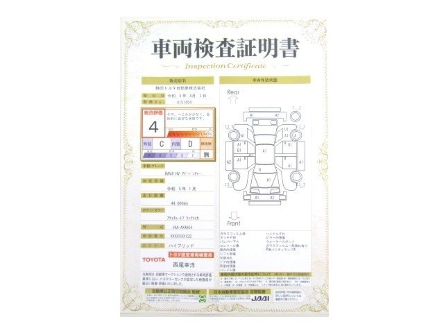 トヨタが認めた検査のプロが、すみずみまで車両をチェックした≪車両検査証明証≫が発行されています。おクルマの状態がわかりやすく安心ですよ♪