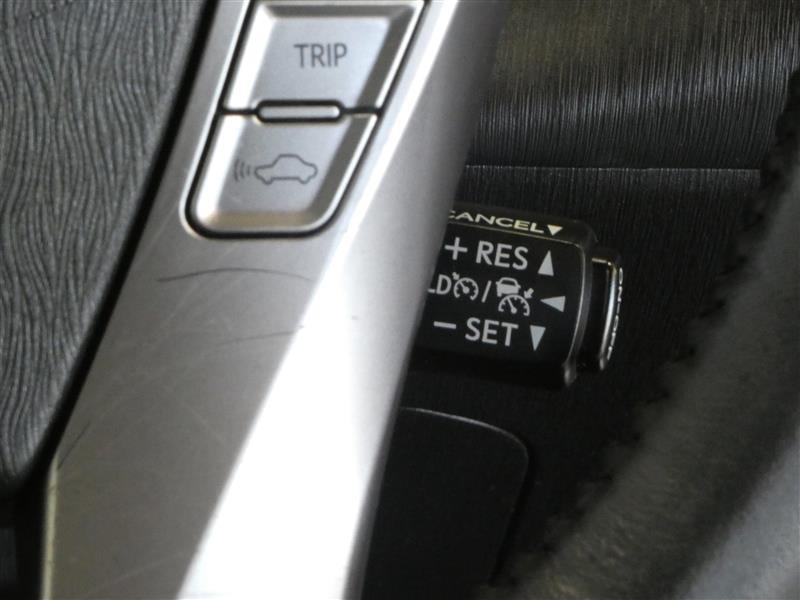 クルーズコントロールスイッチです。アクセルペダルを踏まずに定速走行できるので、高速道路などでの長時間運転の負荷軽減に寄与します。無駄なアクセルの踏み込みも抑えられエコドライブにも貢献しますね。