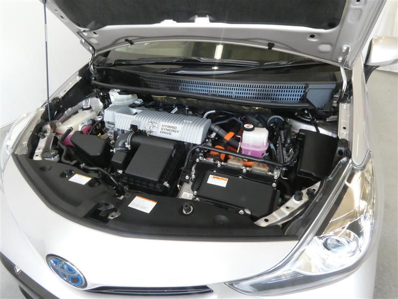1800㏄のガソリンハイブリッドエンジンです。エンジンルームはボンネット裏からヒンジの奥まで油汚れを除去しています。