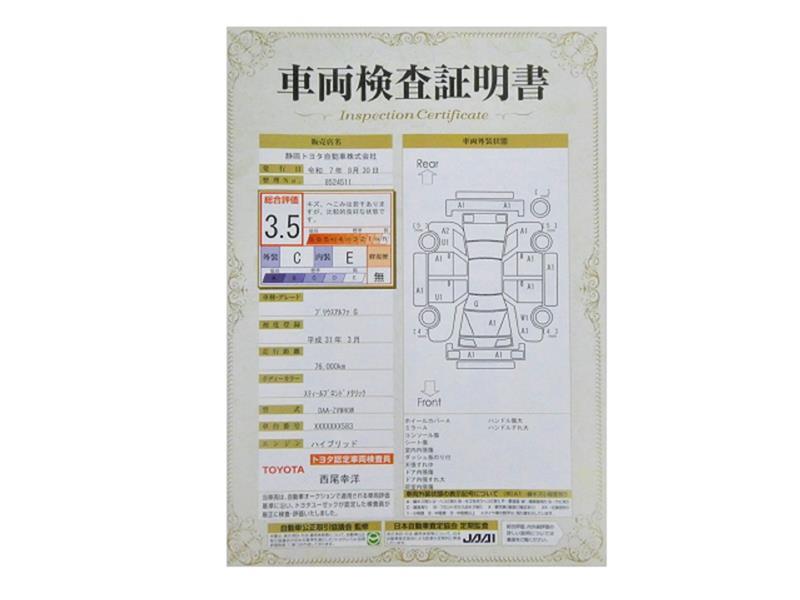 トヨタが認めた検査のプロが、すみずみまで車両をチェックした≪車両検査証明証≫が発行されています。おクルマの状態がわかりやすく安心ですよ♪