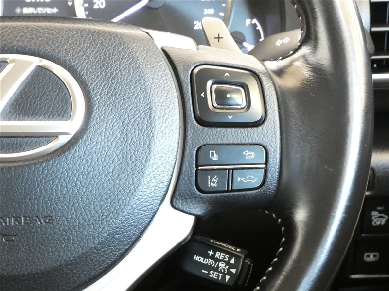ステアリングスイッチ付きです。安全装備の切替や、オーディオ、ディスプレイ、レーダークルーズコントロール操作時にハンドルから手を離すことなく操作可能で安全運転にも寄与した便利な装備です。