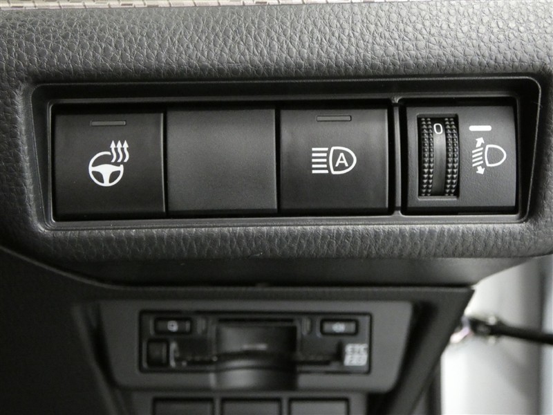 ステアリングスイッチ付きです。安全装備の切替や、オーディオ、ディスプレイ、レーダークルーズコントロール操作時にハンドルから手を離すことなく操作可能で安全運転にも寄与した便利な装備です。