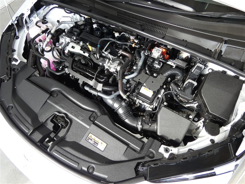 2000㏄のガソリンハイブリッドエンジンです。エンジンルームはボンネット裏からヒンジの奥まで油汚れを除去しています。