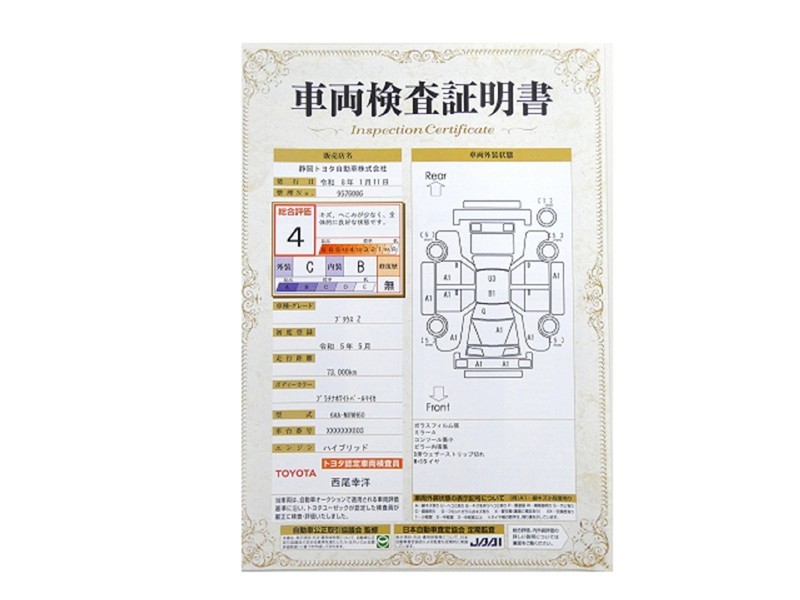 トヨタが認めた検査のプロが、すみずみまで車両をチェックした≪車両検査証明証≫が発行されています。おクルマの状態がわかりやすく安心ですよ♪