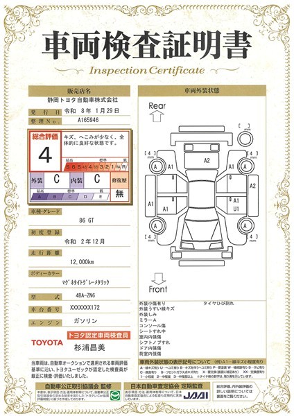 車両検査証明書付きです。おクルマの状態がわかりやすく安心ですよ♪
