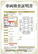 車両検査証明書付きです。 総合評価は4.5点で、キズ、へこみがほぼ無く、きれいな状態のお車です。