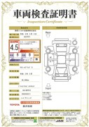 車両検査証明書付きです。 総合評価は4.5点で、キズ、へこみがほぼ無く、きれいな状態のお車です。