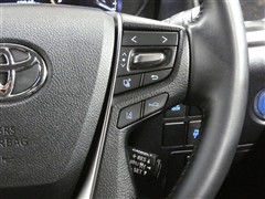 レーダークルーズコントロールスイッチです。高感度なミリ波レーダーセンサーの情報により、先行車を認識しています。先行車の車速が変化しても、設定車速内で車速に応じた適切な車間距離を保ちながら追従走行します