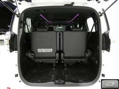 サードシートは大人数でのプラスシートとしては、ヘッドクリアランス、膝廻りと十分なスペースを確保しています。サードシートは左右跳ね上げ収納式です。