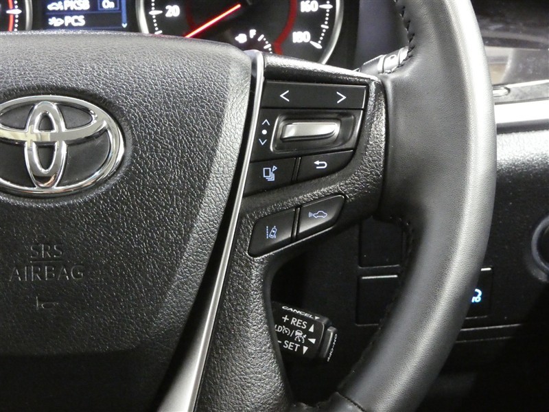 ステアリングスイッチ付きです。安全装備の切替や、オーディオ、ディスプレイ、レーダークルーズコントロール操作時にハンドルから手を離すことなく操作可能で安全運転にも寄与した便利な装備です。