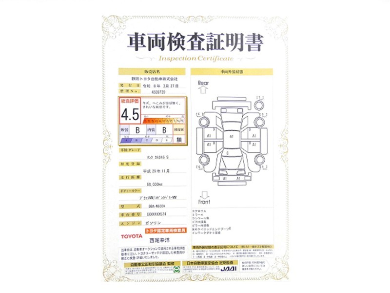 トヨタが認めた検査のプロが、すみずみまで車両をチェックした≪車両検査証明証≫が発行されています。おクルマの状態がわかりやすく安心ですよ♪