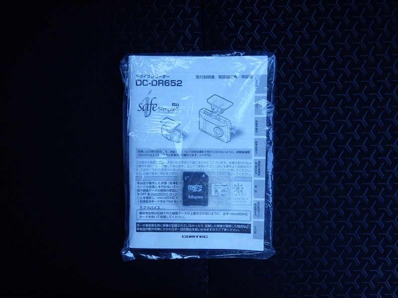 ドライブレコーダーの取扱い説明書付きです。