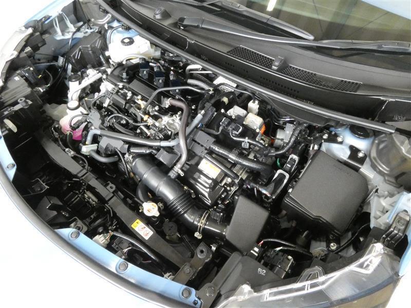 1500㏄のガソリンハイブリッドエンジンです。エンジンルームはボンネット裏からヒンジの奥まで油汚れを除去しています。