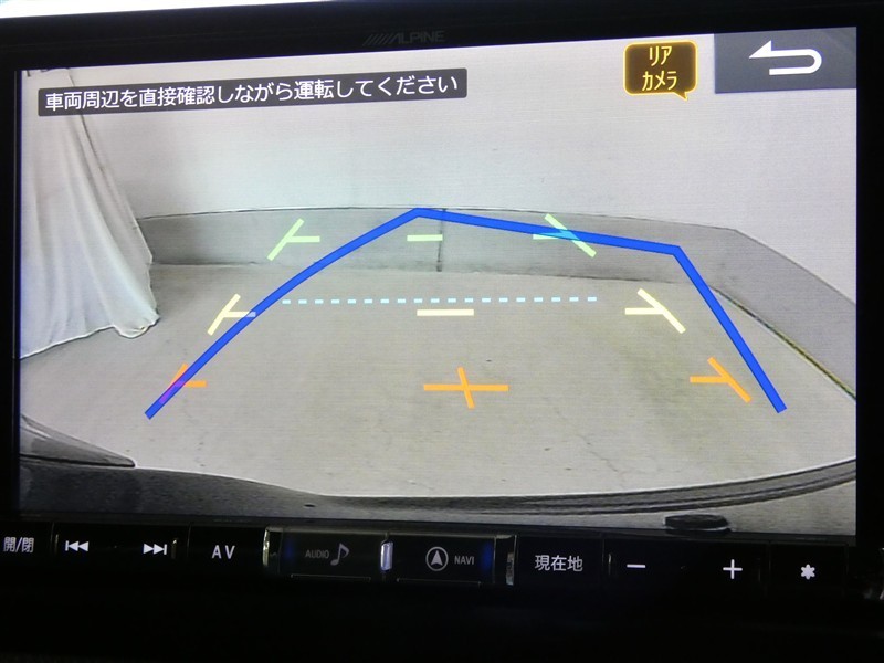 ハンドル操作に連動してガイドラインが変化するバックガイドライン付きのバックモニターです。車庫入れや縦列駐車をサポートします。