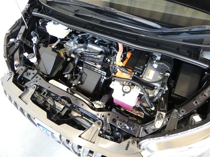 1800ccガソリンハイブリットエンジンです。エンジンルームはボンネット裏からヒンジの奥まで油汚れを除去しています。