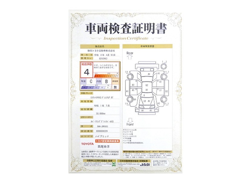 トヨタが認めた検査のプロが、すみずみまで車両をチェックした≪車両検査証明証≫が発行されています。おクルマの状態がわかりやすく安心ですよ♪