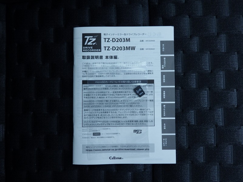 ドライブレコーダーの取扱い説明書付きです。