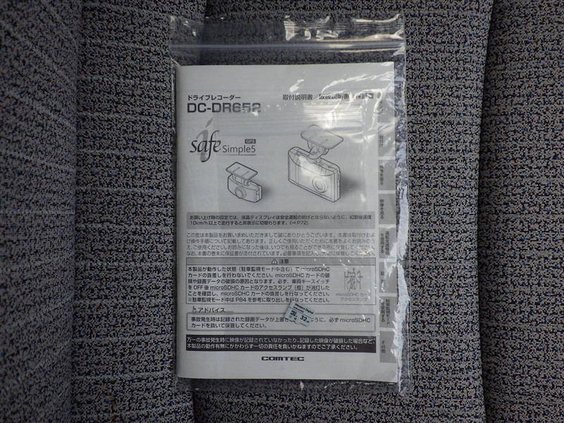 ドライブレコーダーの取扱い説明書付きです。