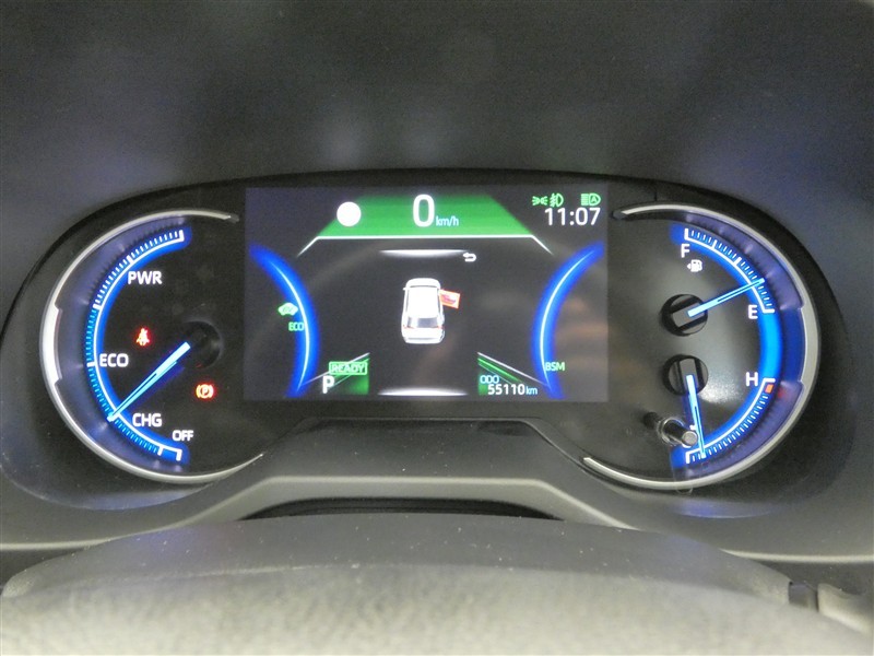 ハイブリッドインジケーターとスピードメーターの2眼メーターパネルです。中央にマルチインフォメーションディスプレイがあります。