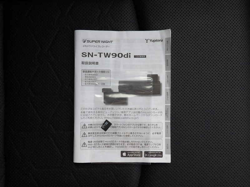 ドライブレコーダーの取扱い説明書付きです。