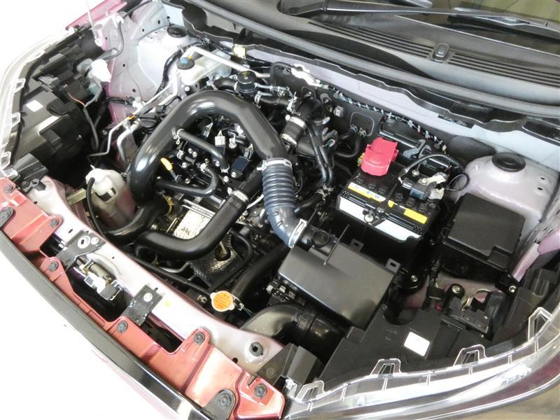 1000㏄のガソリンターボエンジンです。エンジンルームはボンネット裏からヒンジの奥まで油汚れを除去しています。