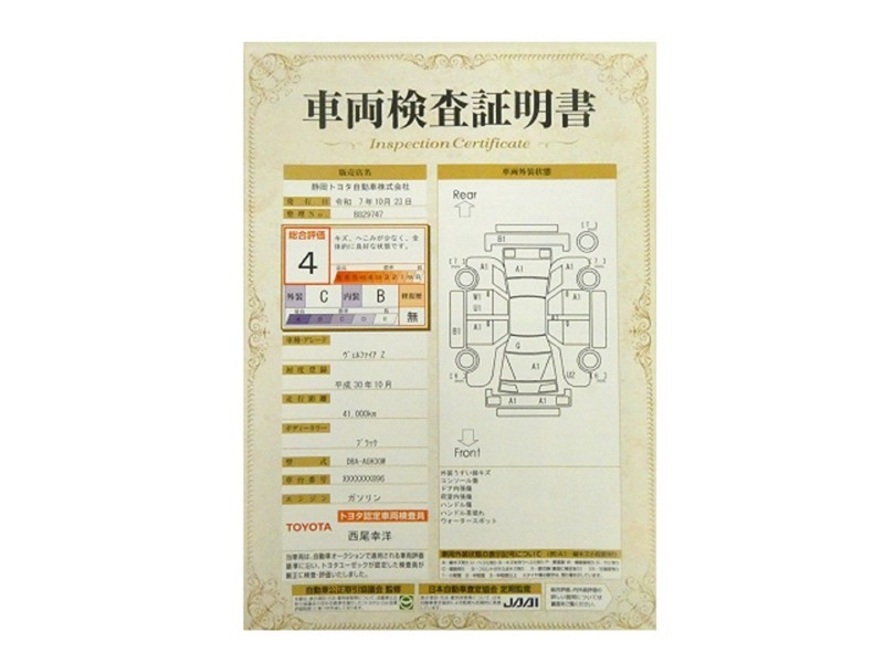トヨタが認めた検査のプロが、すみずみまで車両をチェックした≪車両検査証明証≫が発行されています。おクルマの状態がわかりやすく安心ですよ♪