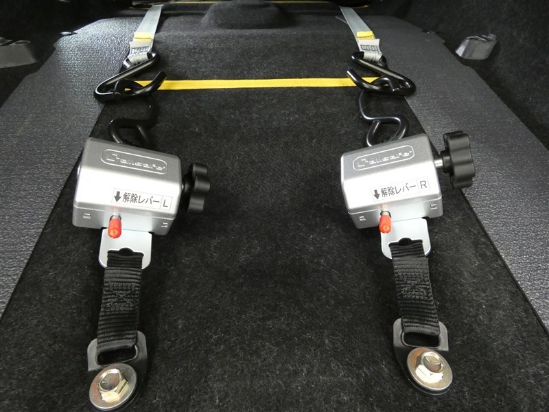 車いす固定ベルトです。走行中でも安心して乗車して頂くためにしっかりと固定します。