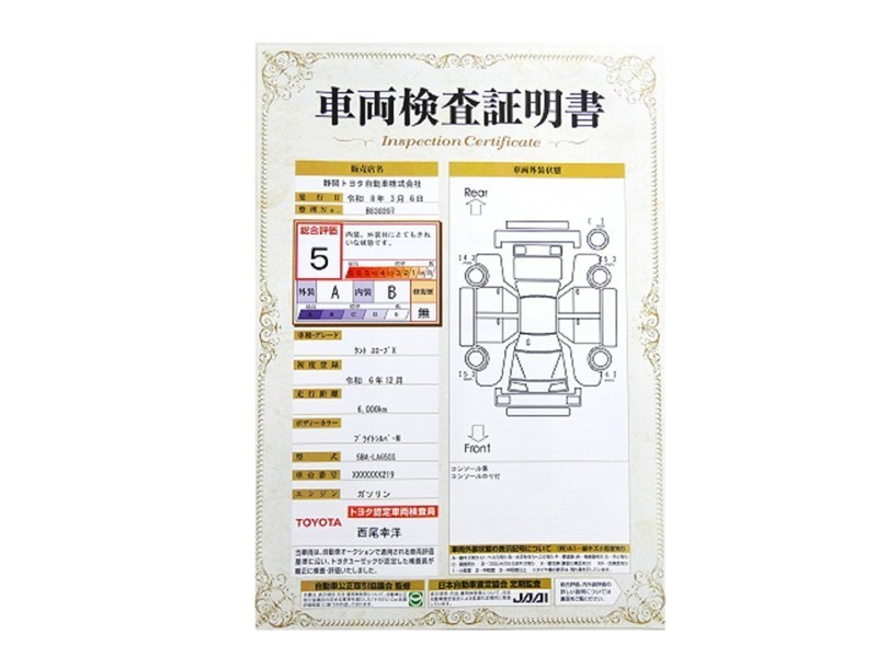 すみずみまで車両をチェックした≪車両検査証明証≫が発行されています。おクルマの状態がわかりやすく安心ですよ♪