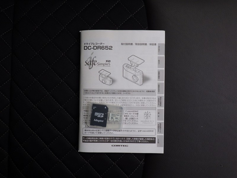 ドライブレコーダーの取扱い説明書付きです。