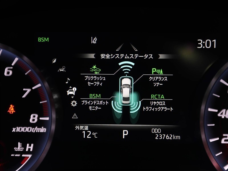 車線変更時などに、ドアミラーでは確認しにくい後側方エリア(ブラインドスポット)に存在する車両をレーダーで検知。警告サインをドアミラー等に表示することで、運転者に注意喚起する機能。