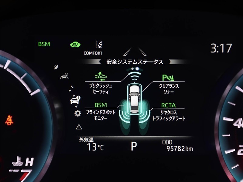 車線変更時などに、ドアミラーでは確認しにくい後側方エリア(ブラインドスポット)に存在する車両をレーダーで検知。警告サインをドアミラー等に表示することで、運転者に注意喚起する機能。