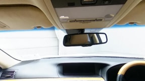 複数のカメラの映像を合成して、クルマの真上から見ているような映像をドライバーに提供する機能。