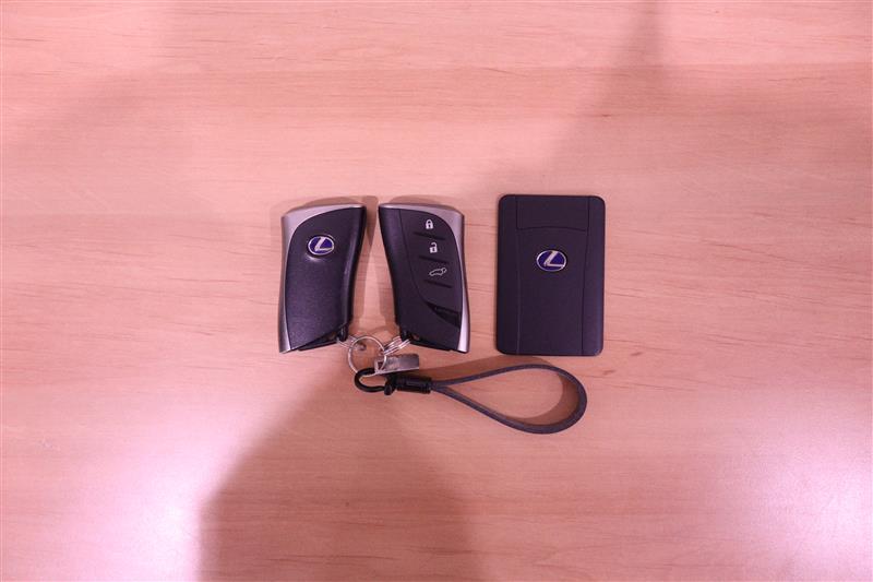 スマートキー。キーをポケットやバッグに入れたままで、ドアの施錠・解錠・エンジンの始動・電動バックドアの操作が可能です。