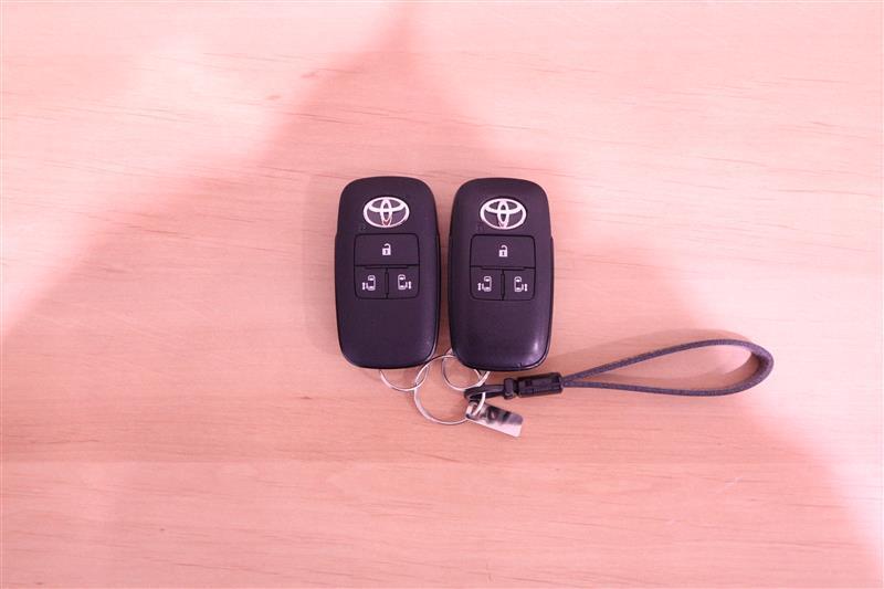 スマートキー。キーをポケットやバッグに入れたままで、ドアの施錠・解錠・エンジンの始動・バックドアの操作が可能です。勿論、電動スライドドアの操作も可能です。