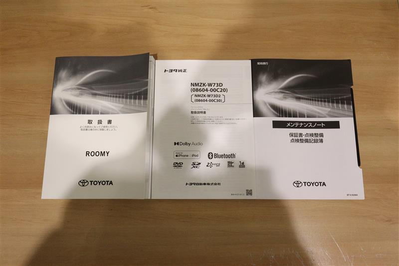車両取扱説明書・ナビゲーション説明書・点検記録簿、しっかり揃った書類です。