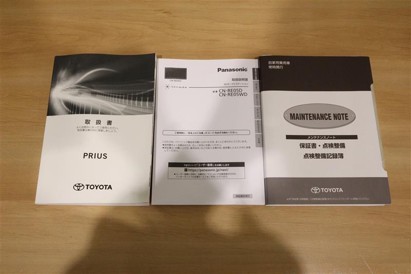 車両取扱説明書・ナビゲーション説明書・点検記録簿、しっかり揃った書類です。