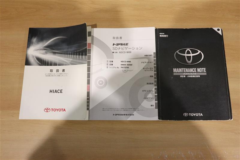 車両取扱説明書・ナビゲーション説明書・点検記録簿、しっかり揃った書類です。