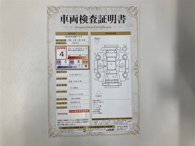 車両検査証明書付きです!だれでも中古車の状態がすぐにわかるよう、車のプロが客観的にチェック。車両の状態やわずかなキズも正確にお伝えします。
