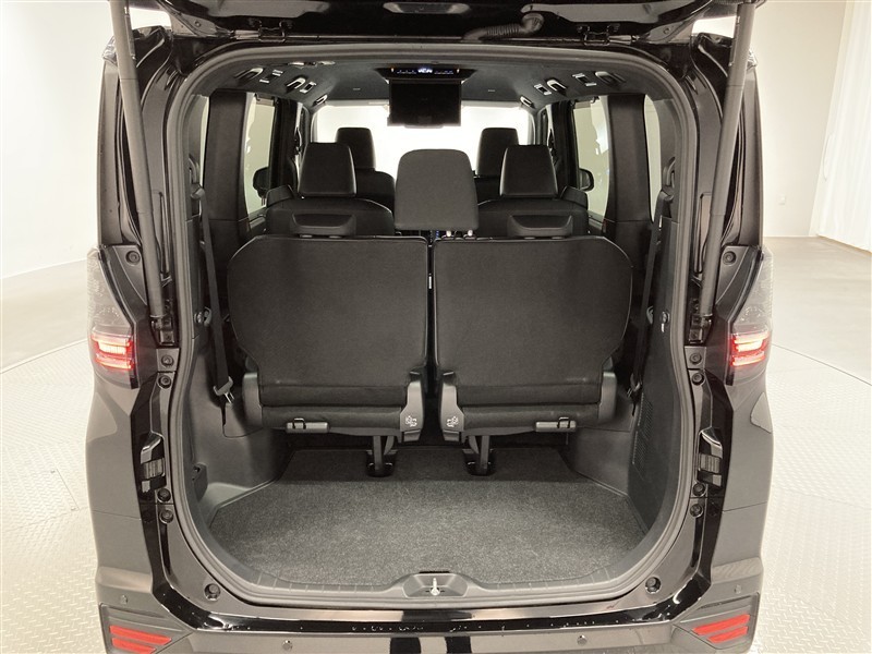 3列目シートは跳ね上げ式で折りたたみ可能です。キャンプ用品など大きな荷物もばっちり収納可能です。