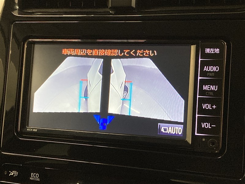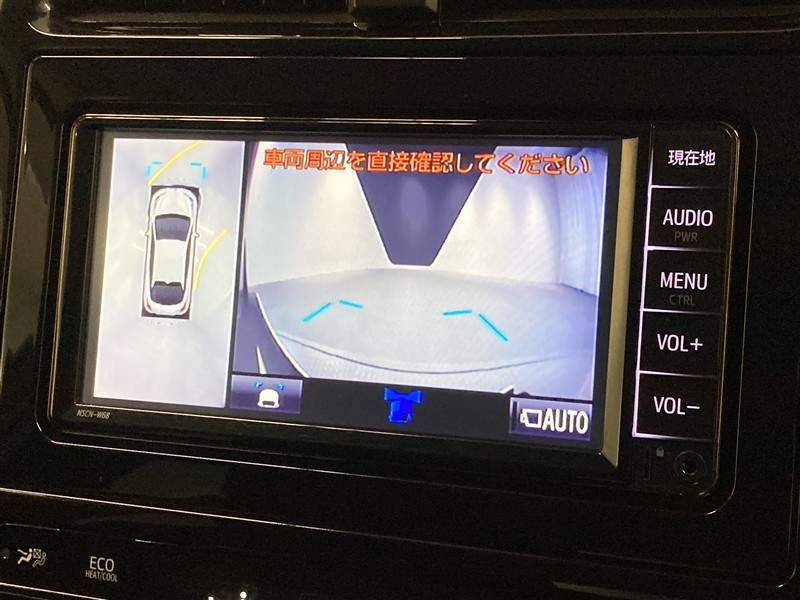 パノラミックビューモニターシステムが付いているので車の上から見た映像が確認できますよ。 一目で車両周辺の情報を確認できますが、直接安全をご確認下さい。