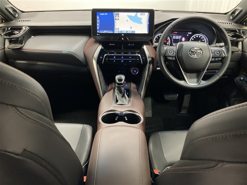 洗練された逞しさを感じるフロントデザインと上質感を追求し安心感と快適性を感じさせる内装のトヨタのプレミアムSUVのハリアーです。