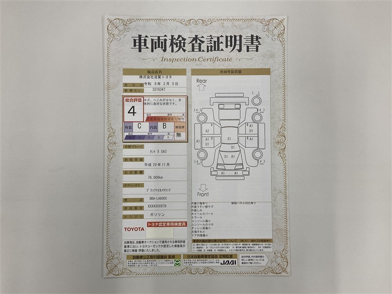 車両検査証明書付きです!だれでも中古車の状態がすぐにわかるよう、車のプロが客観的にチェック。車両の状態やわずかなキズも正確にお伝えします。